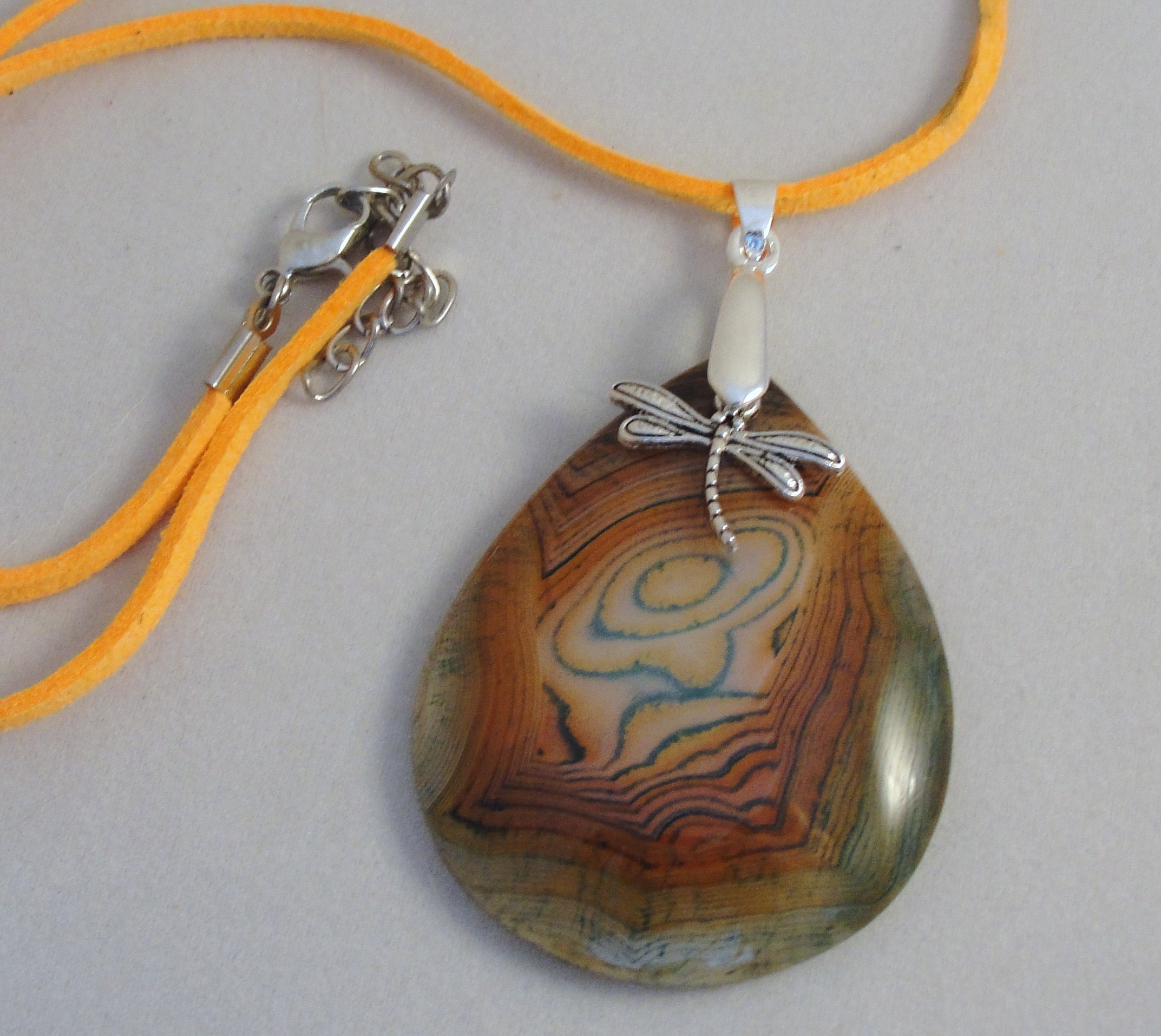 MADE WITH STONE AND METAL CHARM. ORANGE CORD MEASURES 18" WITH 20" EXTENSION.