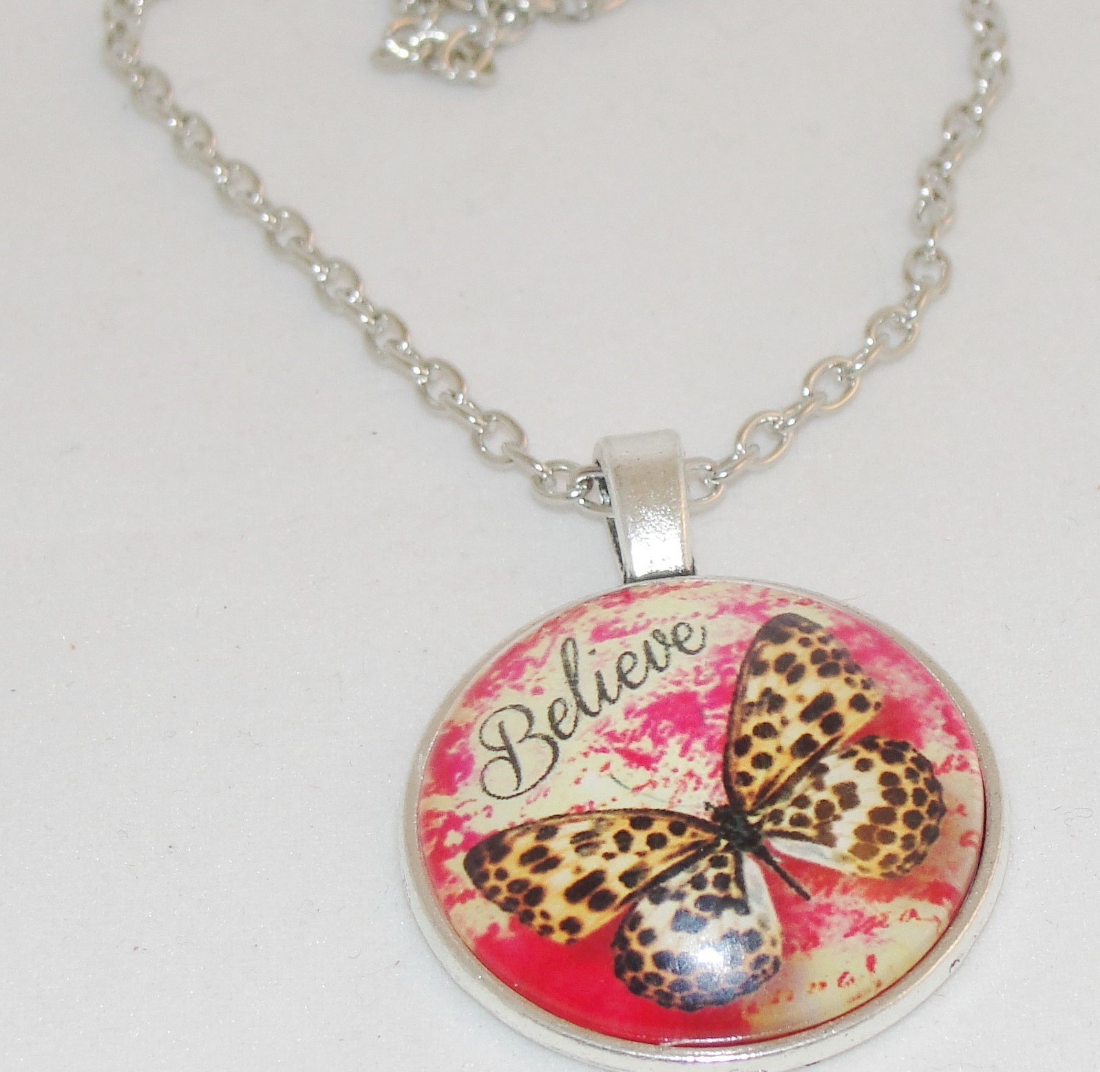 GLASS DOME CHARM. SILVER CHAIN 20"