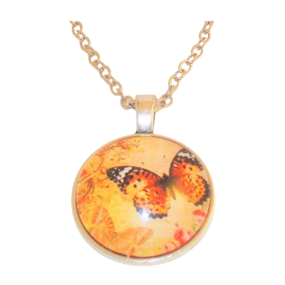 GLASS DOME CHARM. SILVER CHAIN 18"